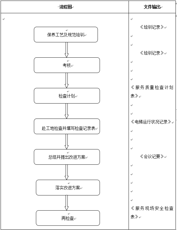 保養(yǎng)工藝及規(guī)范培訓(xùn),考核,檢查計劃,赴工地檢查并填寫檢查記錄表,總結(jié)并提出改進(jìn)方案